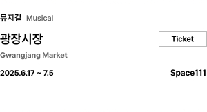 [두산아트센터] 첫 단독 기획·제작 뮤지컬 <광장시장> 6.17~7.5 Space111 2025. 9. 29