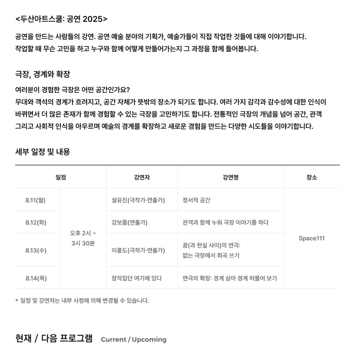 두산아트스쿨: 공연 2025 - 무료 강연 예약 진행 중! 2025. 9. 29