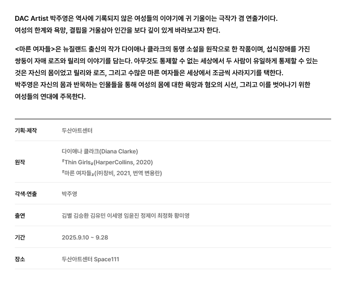 2025 DAC Artist 신작 - 박주영 <마른 여자들>, 강동훈 <도그 워커의 사랑> 2025. 9. 29