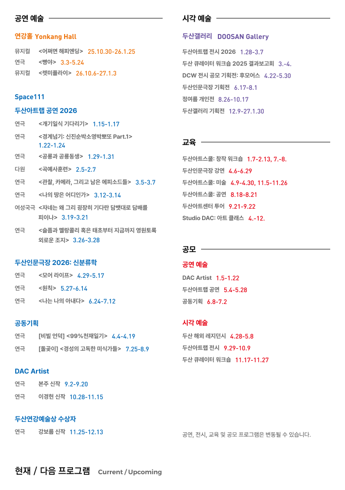 2026 두산아트센터 프로그램 라인업 공개! 2026. 3. 12