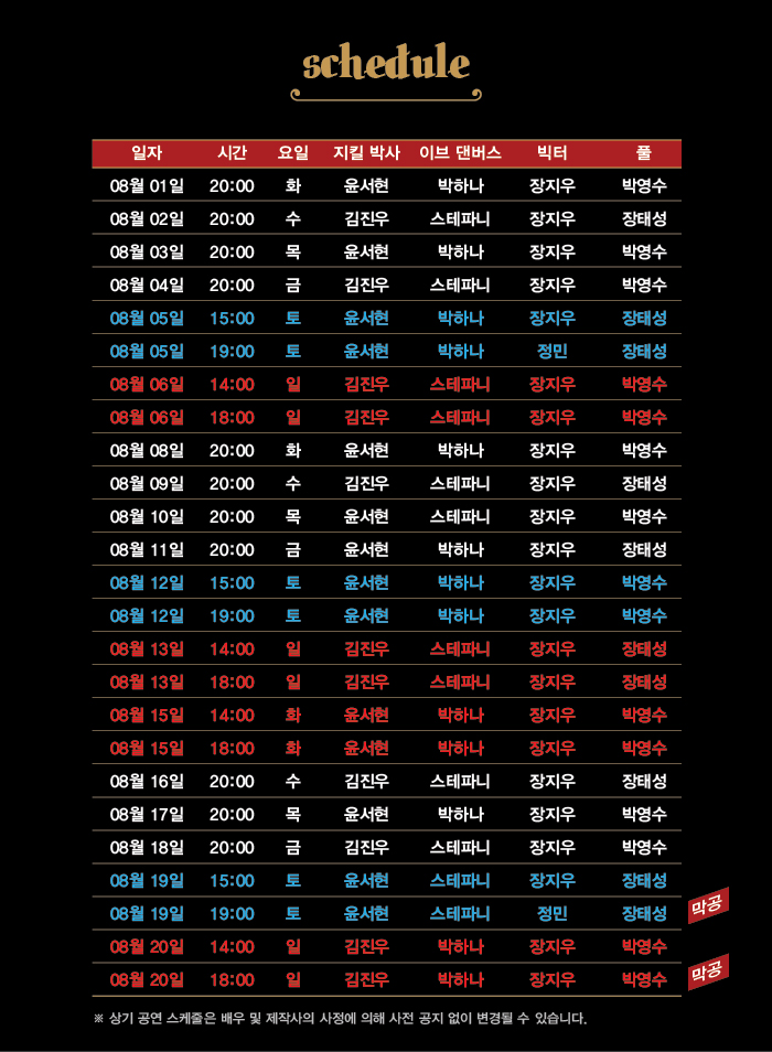 ※ 8/9(수) 공연은 기업 단체로 인해 판매가 마감되었습니다.