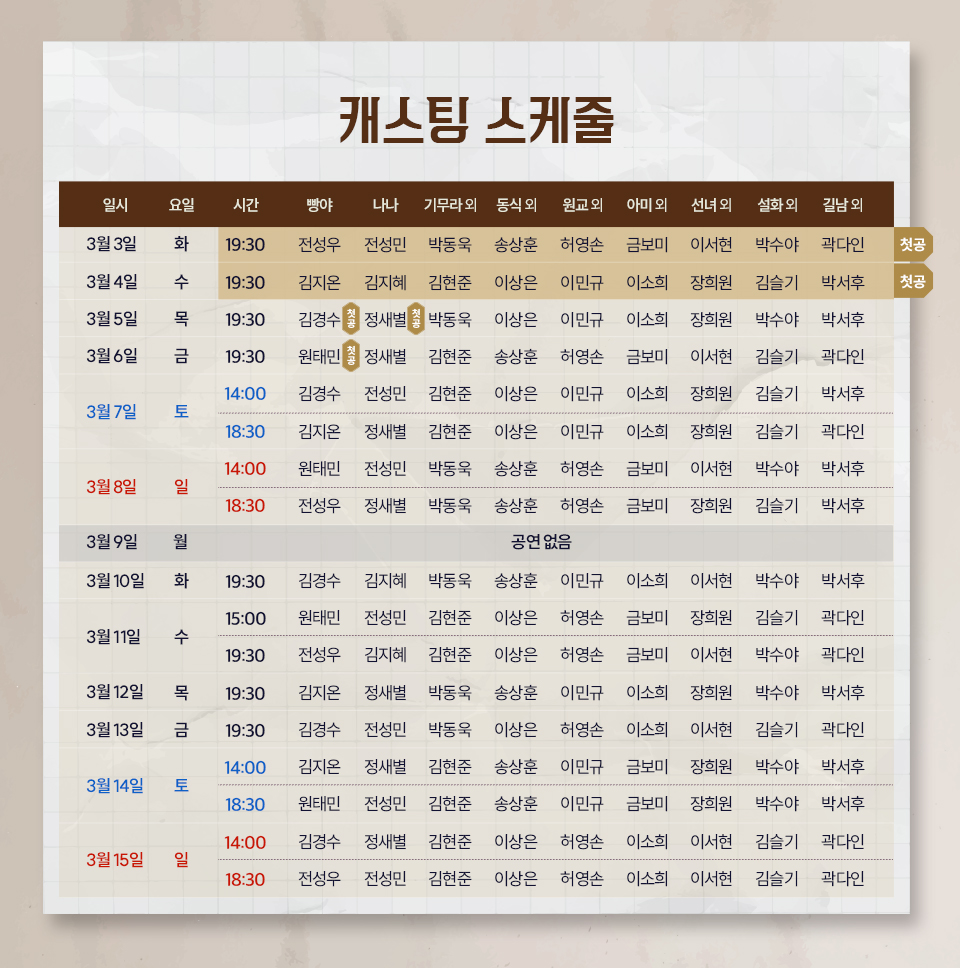 - 출연 일정은 배우 및 제작사 사정에 따라 사전 공지 없이 변경될 수 있습니다.