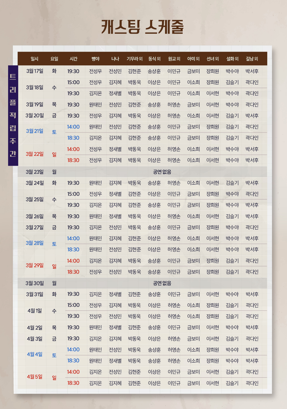 - 출연 일정은 배우 및 제작사 사정에 따라 사전 공지 없이 변경될 수 있습니다.